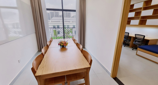 Ký túc xá VinUni được thiết kế như khách sạn với nội thất đẳng cấp, diện tích sàn 10.600m², gồm 72 căn hộ và khu tự học, căng-tin, phòng y tế, cửa hàng tiện ích. Mô hình “3 cùng” (cùng sống – cùng học – cùng làm việc) tạo nên môi trường cộng đồng gắn kết giữa sinh viên và giáo sư, mang lại trải nghiệm sống và học tập đầy cảm hứng.